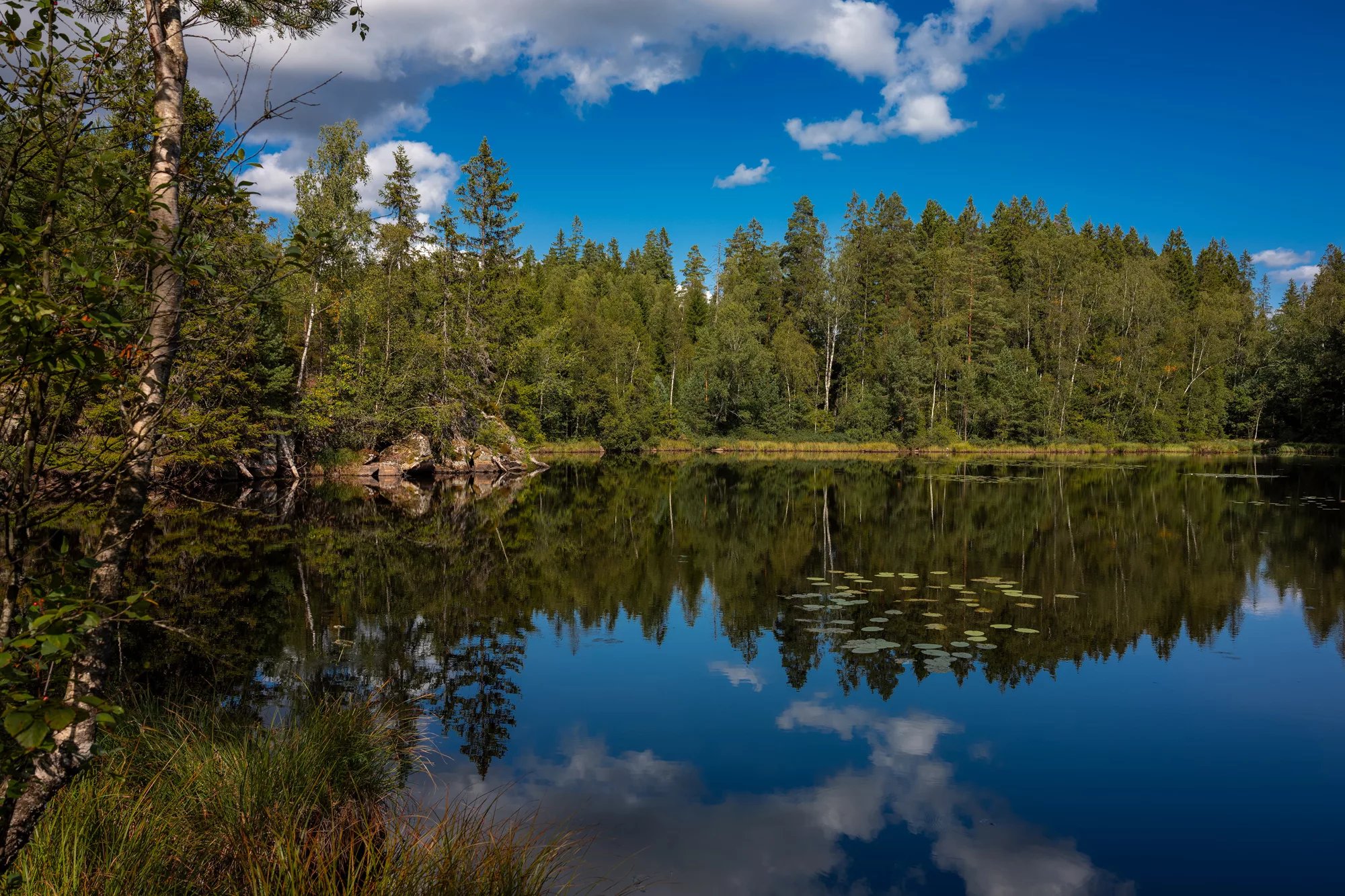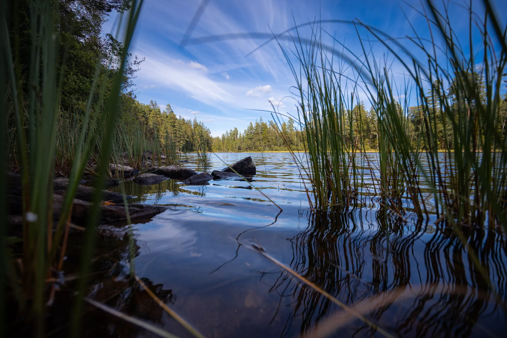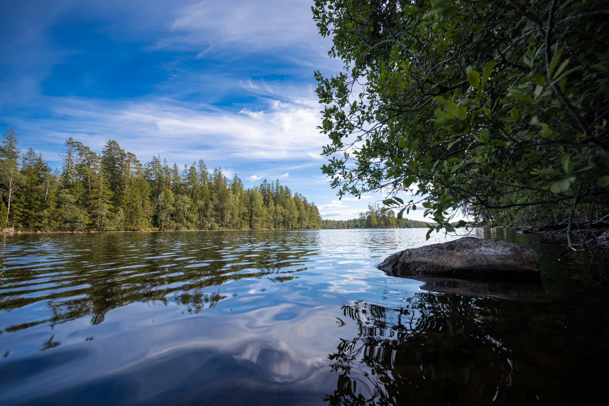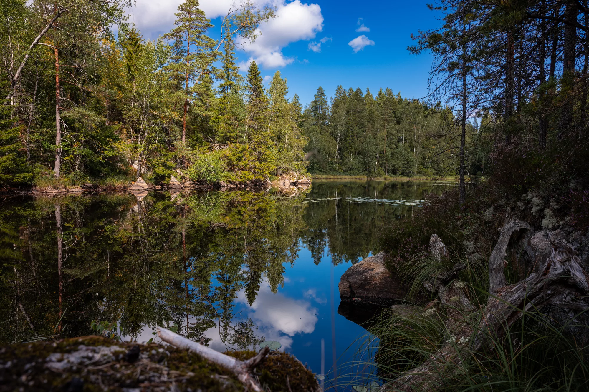 Die Region rund um Borås ist gespickt mit Seen, die wie kleine Juwelen in der Landschaft liegen. Jeder Spaziergang führte uns an neue Ufer, wo die Natur noch unberührt scheint. Das Wasser lag oft spiegelglatt da, nur unterbrochen vom Plätschern eines Fisches oder dem Ruf eines Vogels. Es war ein Ort, um die Seele baumeln zu lassen – und gleichzeitig ein perfektes Setting für stimmungsvolle Naturaufnahmen.