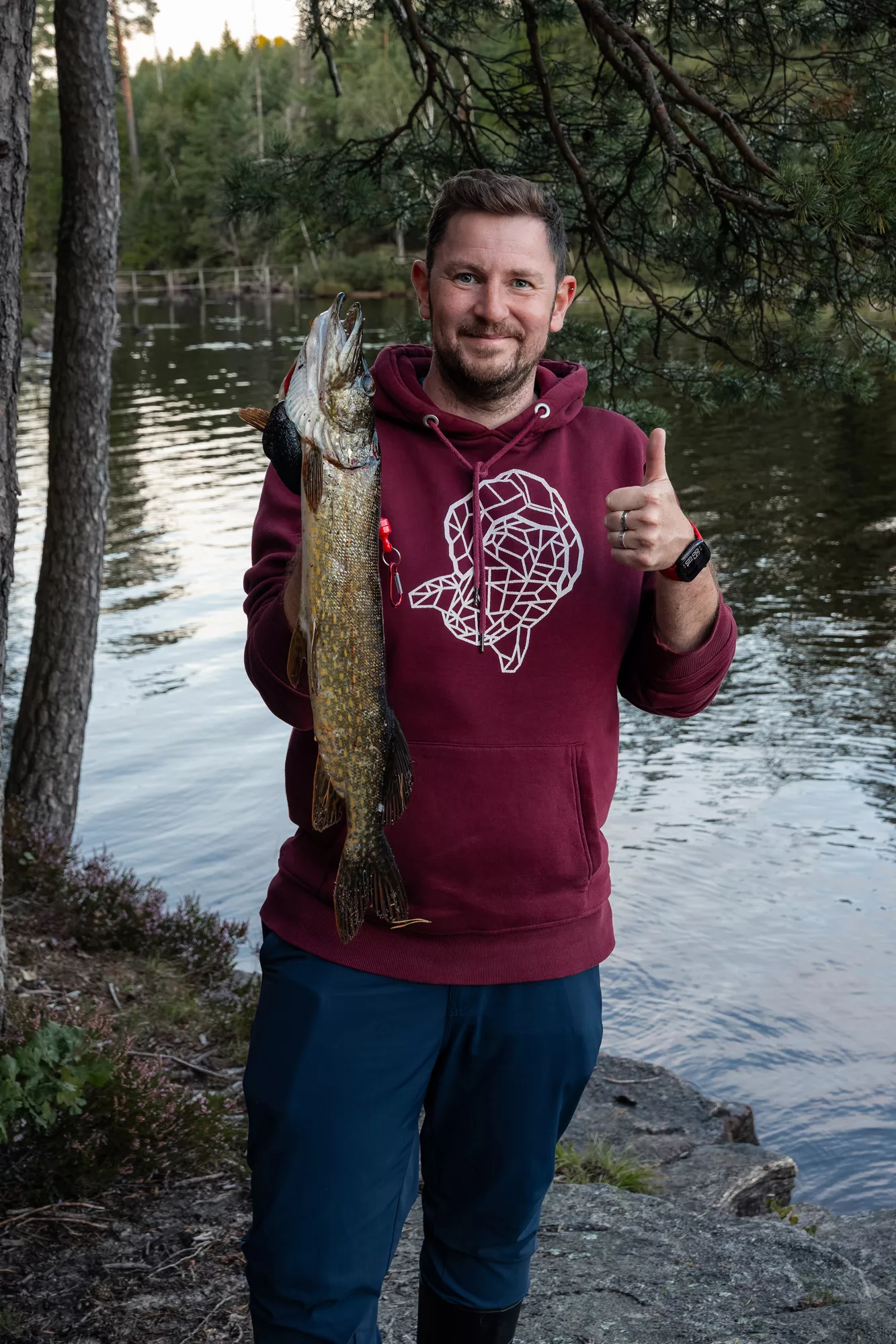 Natürlich durfte das Angeln nicht fehlen. Auch wenn wir anfangs nicht viel Glück hatten, zogen wir schließlich zwei beeindruckende Hechte aus dem Wasser.